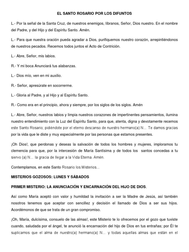 Santo Rosario por los Difuntos 4 Segundo misterio. Santo rosario para difuntos lunes pdf. Invocándola con los títulos más bellos que durante siglos el pueblo cristiano ha ido descubriendo en su honor.